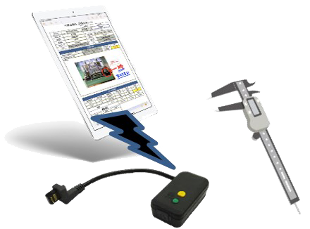 製品概要測定器(ノギス、メジャー、はかり等)と電子帳票を連携することにより、数値を電子帳票に直接反映。自動計算することによりヒューマンエラー防止に貢献します。 また、RS-232C出力出来る機器であればBluetooth接続により連携が可能です。製品特長■工場内IoT導入の第一歩に