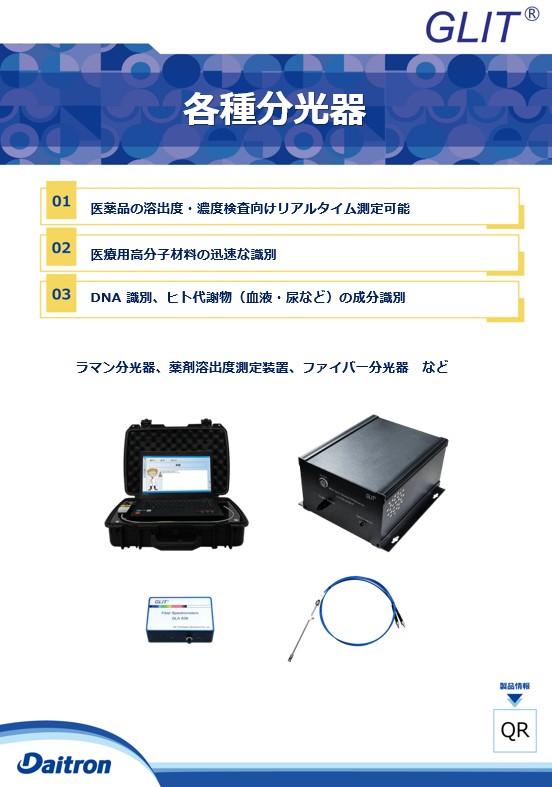 各種医療向けのGLIT製品をご紹介しております。 ・DNA 鑑別やヒトの代謝物(血液、尿など)の成分鑑別が可能な光ファイバー分光計および光源 ・紫外線検出器および薬剤溶出度リアルタイム測定装置 ・785nmの波長で透過が強く, 検出効果が優れるラマン分光計